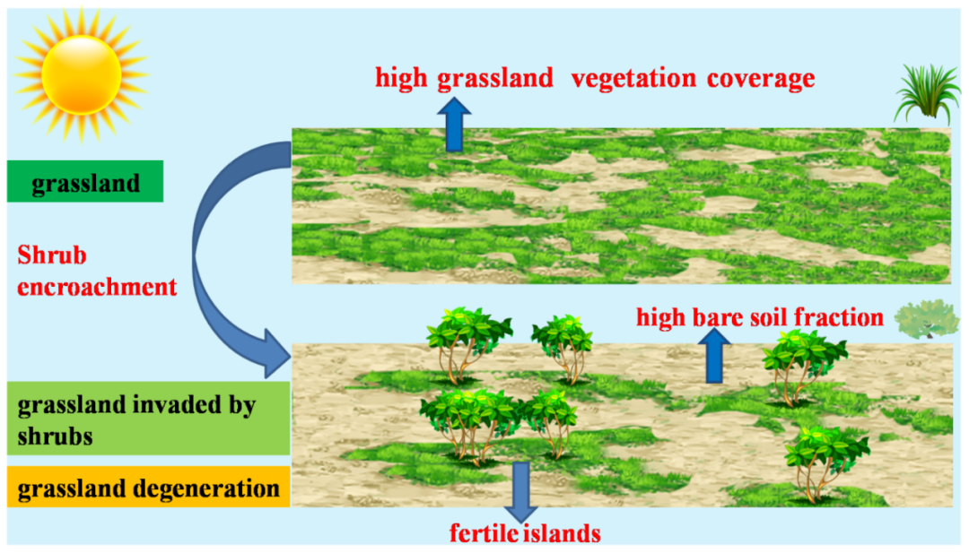 草原灌叢化示意圖(圖片來源: Shen et al., 2022. AFM)