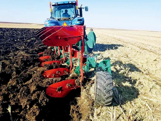 中科院海倫農(nóng)業(yè)生態(tài)試驗(yàn)站進(jìn)行秸稈翻混還田。圖/韓曉增