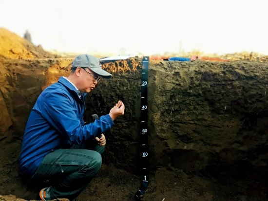 中科院沈陽應(yīng)用生態(tài)研究所張旭東研究員團(tuán)隊(duì)成員在保護(hù)性耕作研發(fā)基地采集土壤剖面標(biāo)本和深層土壤樣品。
