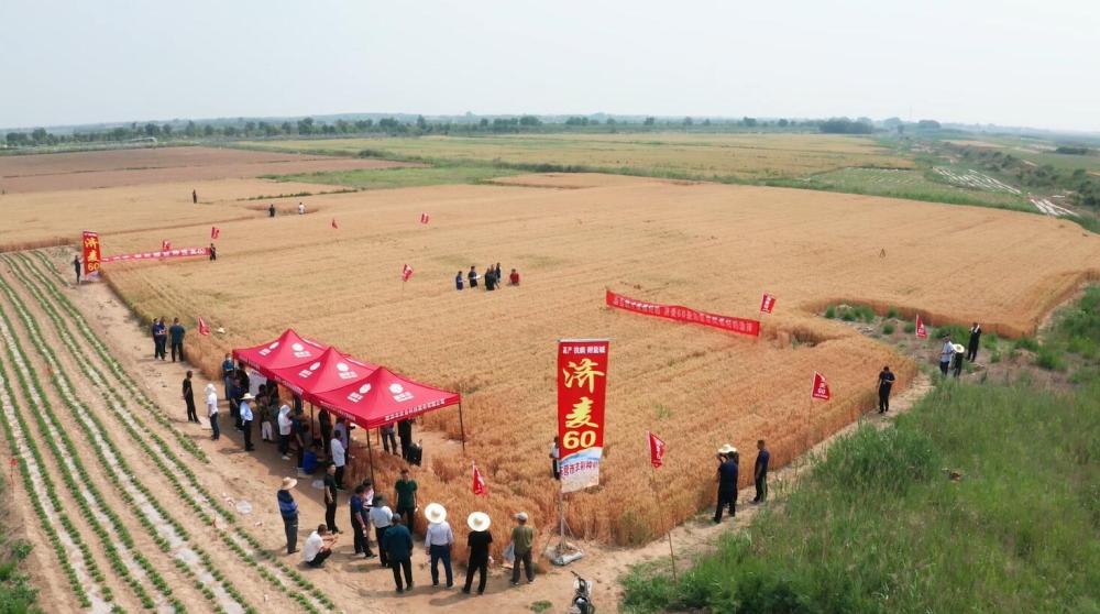 6月5日,在山東省東營市墾利區,抗旱、耐鹽堿小麥“濟麥60”正在測產。(山東省農科院供圖)