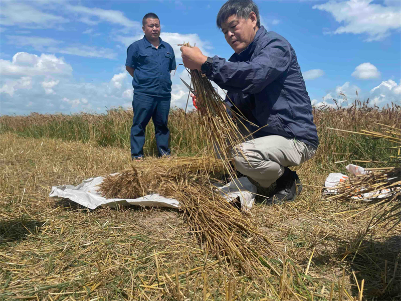 風(fēng)吹麥浪,滿目金黃。今天,記者隨專家一起來到洮南市圣一農(nóng)場種植基地,對“雙季雙優(yōu)”種植模式第一季即將收獲的小冰麥進(jìn)行測產(chǎn)。專家組經(jīng)過實(shí)測,該試驗(yàn)地高密度種植區(qū)測產(chǎn)產(chǎn)量5104公斤/公頃(17%含水量),正常條件栽培區(qū)大面積實(shí)收公頃產(chǎn)量3561公斤(17%含水量),雙雙達(dá)到了理想預(yù)期。