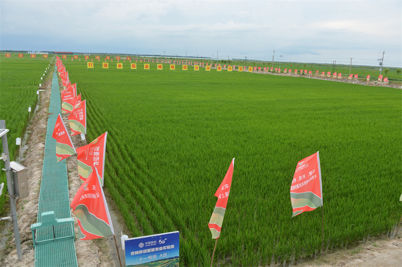 記者看到,在華清農業的試驗田里,插秧40天的水稻已長到半米多高。王長志介紹,水稻品種為松遼五號,如今一株已分蘗成30株,每株預估能產150粒米,今年畝產量能達1100斤。