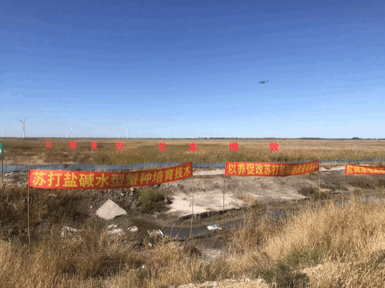 需要場地來進一步擴大養殖規模的葛俊,在尋找突破的過程中,也跟隨文波龍團隊將目光從鎮賚的泡塘、水田轉向了白花花的鹽堿地。