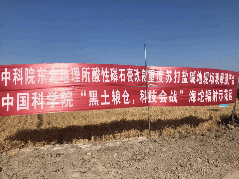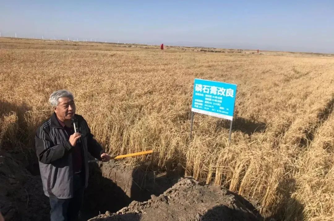 “我們的主要技術是用酸性磷石膏造良田,大面積改良鹽堿地。把不同的地塊,按照不同的鹽堿程度布設石膏的用量,經過旋耕、耙地排鹽、洗鹽,然后移栽,后期管理,力爭第一年能夠達到畝產400公斤以上。”