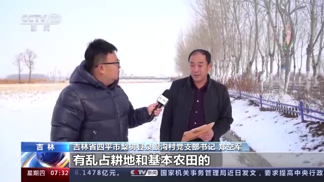 吉林省四平市梨樹縣泉眼溝村黨支部書記 鄭空軍:防止有亂占耕地和基本農田的,我們總防止這事,每兩周巡查一次,巡查員每三天巡查一次。