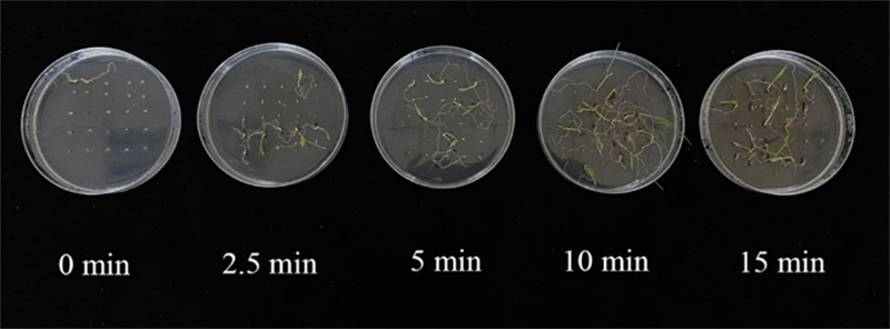 圖6 不同煙熏時間對狗尾草種子萌發的影響(作者拍攝)