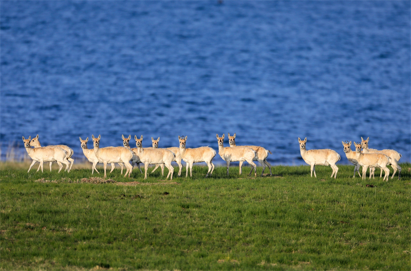 青海湖鳥島國際重要濕地湖濱的普氏原羚。國家林草局供圖