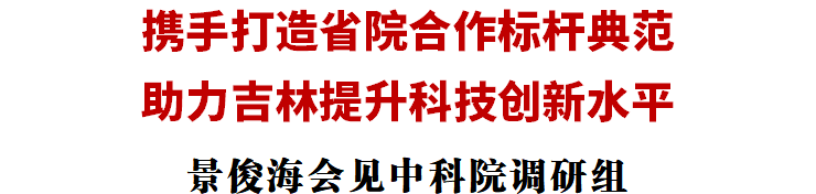 景俊海向陰和俊一行來吉林調研表示誠摯歡迎。他說,近年來,中科院與吉林省持續深化省院合作,共同謀劃推進“黑土糧倉”科技會戰,取得了一批重要成果。希望中科院深入貫徹習近平總書記視察吉林重要講話重要指示精神,進一步推進“黑土糧倉”科技會戰,在人才聯合培養、學科聯合建設、技術聯合攻關、成果聯合轉化推廣等方面繼續加大力度,為吉林實施“千億斤糧食”產能建設工程提供更多科技支撐,共同扛穩維護國家糧食安全重任。同時希望大力支持在吉國家重點實驗室重組,常態化組織開展“院士進吉林”活動,攜手打造省院合作標桿典范,助力吉林提升科技創新水平。我們一定為中科院在吉開展工作提供優質服務保障,真正當好廣大院士專家和科研工作者扎根吉林、建設吉林、奉獻吉林的堅強后盾。