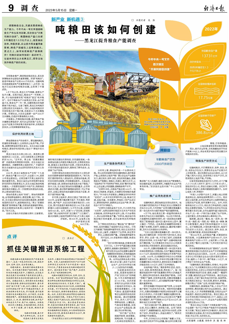 【經(jīng)濟日報】噸糧田該如何創(chuàng)建——黑龍江提升糧食產(chǎn)能調查