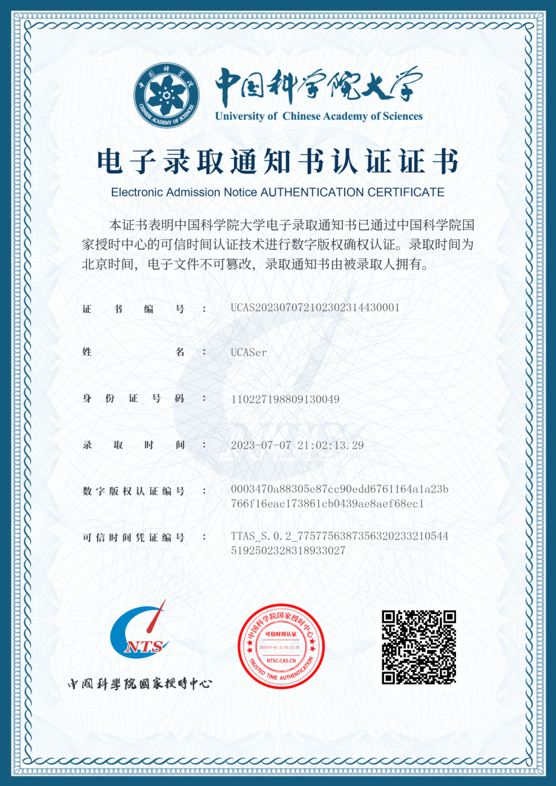 啟封國科大2023年本科生錄取通知書