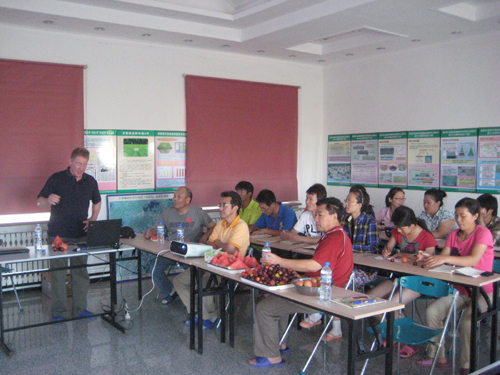 在吉林省外國(guó)專家局引智項(xiàng)目的支持下,2011年8月14-19日,國(guó)際知名鹽漬土專家、美國(guó)加州大學(xué)戴維斯分校Stephen R. Grattan教授,來(lái)東北地理與農(nóng)業(yè)生態(tài)研究所進(jìn)行交流訪問(wèn)。訪問(wèn)期間,Grattan教授與鹽漬土生態(tài)與改良學(xué)科組研究人員及研究生就鹽堿土改良,灌溉排水管理,作物對(duì)鹽堿響應(yīng)等方面做了深入探討。