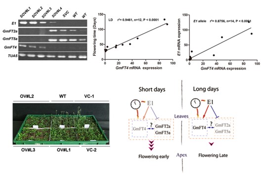 大豆分子設(shè)計(jì)育種重點(diǎn)實(shí)驗(yàn)室揭示大豆光周期調(diào)節(jié)E1通路新成員“GmFT4”
