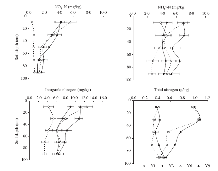 圖1 蘇打鹽堿地稻田不同開墾年限的氮素變化