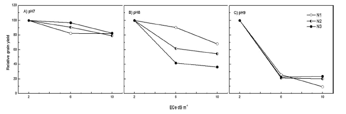 圖2 不同土壤鹽分和pH下氮肥對水稻的增產作用