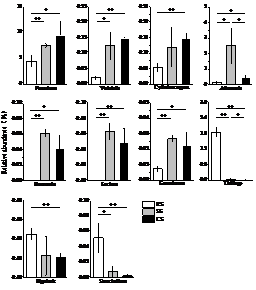 東北地理所土壤物質循環學科組科研人員以大豆-玉米-小麥輪作(RS),大豆短期連作(小麥-大豆-大豆)(SS)和大豆長期連作(CS)的大豆根圍土壤為研究對象,采用qPCR及高通量測序(MiSeq)技術,探索長期連作對大豆田土壤真菌豐度、群落結構和一些功能菌群的影響。結果表明:大豆長期連作土壤真菌豐度顯著高于大豆輪作和大豆短期連作(圖1)。大豆輪作和短期連作土壤中真菌優勢菌門是Ascomycota、Basidiomycota和Zygomycota,但長期連作土壤中Basidiomycota不再是優勢菌門(圖2)。主坐標分析(PCoA)顯示,連作對土壤真菌群落組成和結構影響顯著,長期連作和短期連作對土壤真菌群落影響也不同(圖3)。Lefse分析表明潛在的致病菌(Alternaria和Boeremia)在大豆短期連作中起主要作用,潛在的有益菌(Clonostachys、Metacordyceps和Metarhizium)在大豆長期連作中起主要作用(圖4)。進一步分析發現大豆連作后分別有10個潛在的致病菌和有益菌相對豐度發生顯著變化,大豆連作后致病菌相對豐度增加的同時有益菌相對豐度也在顯著增加(圖5)。