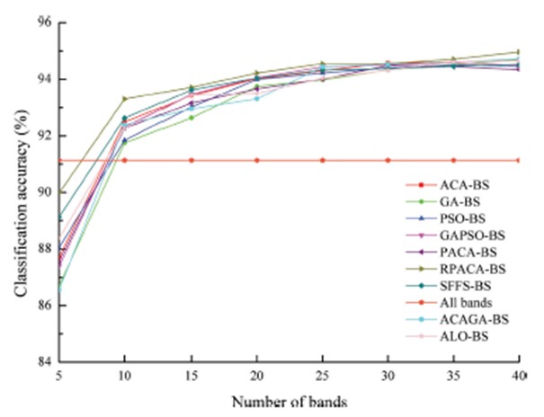 圖 3 PACA-BS及幾種基準算法生產的高光譜圖像分類精度