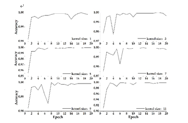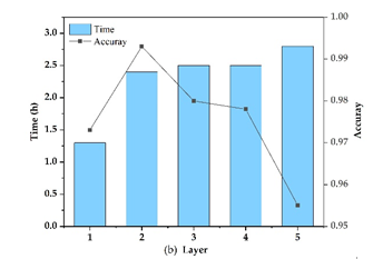 圖2 卷積核大小及卷積層數設置對深度學習算法精度及效率的影響