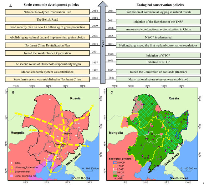 論文信息:Mao, D., He, X.*, Wang, Z., et al., 2019. Diverse policies leading to contrasting impacts on land cover and ecosystem services in Northeast China. Journal of Cleaner Production, 240, 117961, https://doi.org/10.1016/j.jclepro.2019.117961.