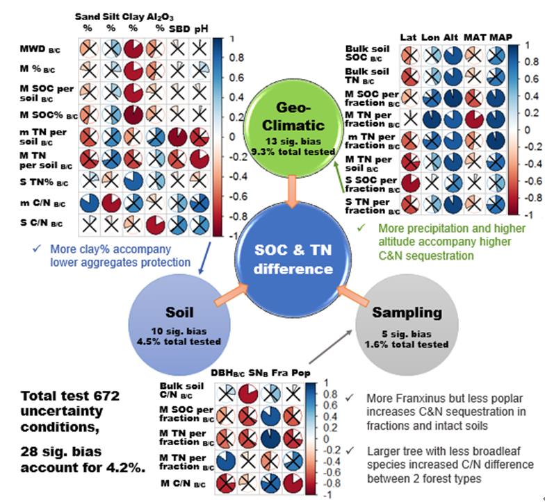 圖5. 關于地理氣候條件、土壤和闊葉樹與針葉樹采樣差異的不確定性。