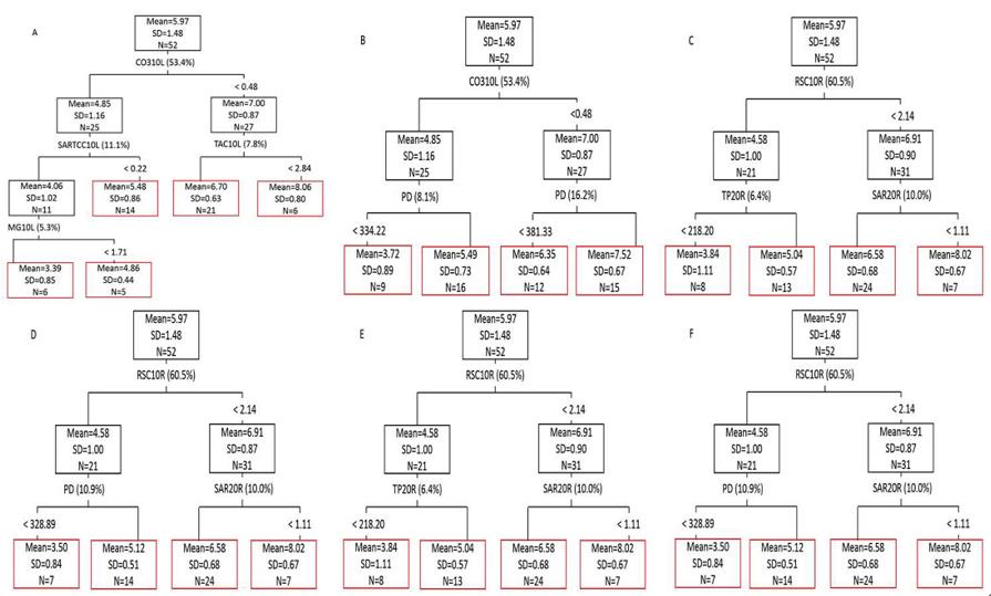 圖1蘇打鹽堿地水田不同土壤特征及產量構成解釋水稻產量變異性的回歸樹