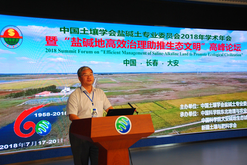 2018年7月17-20日, 由中國土壤學會鹽堿土專業委員會主辦,中國科學院東北地理與農業生態研究所,中國科學院大安堿地生態試驗站,新疆土壤與肥料學會承辦的中國土壤學會鹽堿土專業委員2018年學術年會暨“鹽堿地高效治理助推生態文明”高峰論壇分別在吉林省長春市和大安市隆重舉行。來自國內外22所大學、72個科研院所相關領域的院士、知名專家、學者以及25家相關企業等與會代表約400余人參加了大會。