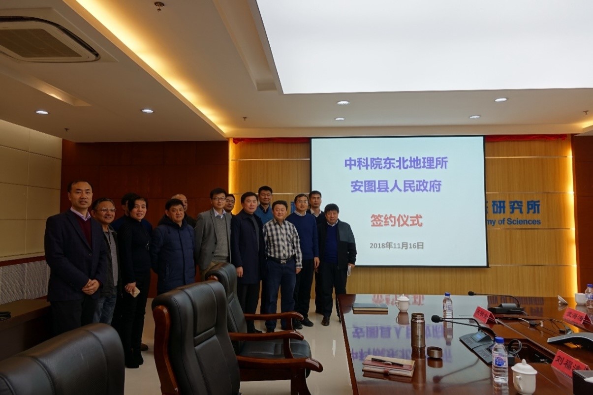 2018年11月16日,東北地理所與安圖縣人民政府在長春簽署了戰(zhàn)略合作協(xié)議,并召開了科技對(duì)接座談會(huì)。東北地理副所長姜明研究員、所長助理王宗明研究員,安圖縣副縣長董振國、安圖縣政協(xié)副主席黃明鎮(zhèn)、副縣長樊俊出席了簽約儀式。會(huì)議由王宗明所長助理主持。