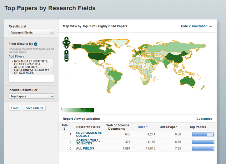 東北地理所“農業科學”和“環境科學與生態學”2個學科進入ESI全球前1%行列