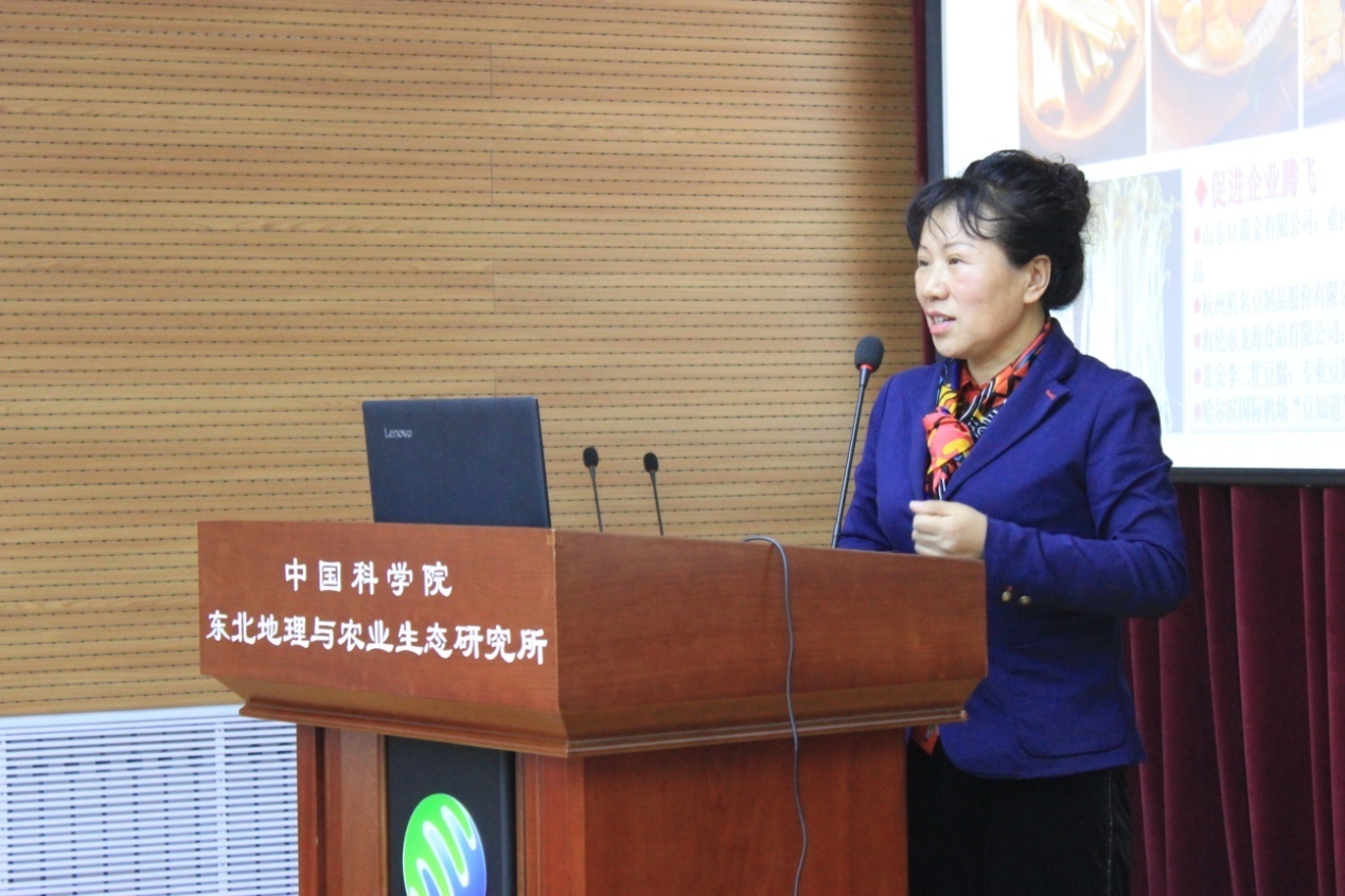 報(bào)告會(huì)上,李艷華結(jié)合自己三十來(lái)年科研經(jīng)歷和人生感受,回顧了自己克服重重困難,專(zhuān)注大豆育種研究,終于培育出東生系列大豆新品種的科研過(guò)程。她懷著對(duì)家鄉(xiāng)父老鄉(xiāng)親的深厚情感,立志通過(guò)培育大豆新品種讓家鄉(xiāng)農(nóng)民脫貧致富,在艱苦的科研條件下,幾十年如一日?qǐng)?jiān)持在科研一線(xiàn),終于培育出在黑龍江省第二、第三積溫帶大面積推廣應(yīng)用的大豆品種,為地方經(jīng)濟(jì)發(fā)展貢獻(xiàn)了力量,并取得巨大經(jīng)濟(jì)和社會(huì)效益。李艷華以樸實(shí)的話(huà)語(yǔ)講述了她在田間授粉、試驗(yàn)室選種、指導(dǎo)豆農(nóng)、訪(fǎng)問(wèn)企業(yè)、調(diào)研市場(chǎng)等一個(gè)個(gè)生動(dòng)感人的故事,會(huì)場(chǎng)上響起了一陣陣熱烈的掌聲。她這種不忘初心、持之以恒、奉獻(xiàn)事業(yè)、淡泊名利的精神品質(zhì)和樸素的家國(guó)情懷贏(yíng)得了大家的尊敬和贊揚(yáng)。