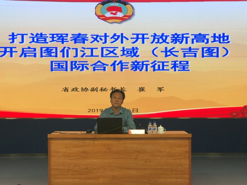 崔軍從新時(shí)代、新任務(wù)采取新舉措,加快中國圖們江區(qū)域(琿春)國際合作示范區(qū)建設(shè);順應(yīng)東北亞地緣形勢新變化,把長吉圖開發(fā)開放先導(dǎo)區(qū)建設(shè)成為東北對外開放示范區(qū);打造琿春對外開放新高地,開啟中國參與圖們江區(qū)域國際合作新征程等三個(gè)方面;系統(tǒng)闡述了如何打造琿春對外開放新高地開啟圖們江區(qū)域(長吉圖)國際合作新征程。崔軍指出,當(dāng)下我們在多邊框架之內(nèi),雙邊關(guān)系正處于歷史最好時(shí)期,我們要貫徹落實(shí)習(xí)近平總書記視察吉林和東北座談會的總體要求,加快推進(jìn)長吉圖先導(dǎo)區(qū)建設(shè);我們要積極創(chuàng)造條件,在多邊框架之內(nèi)實(shí)現(xiàn)雙邊突破,以小區(qū)域合作帶動(dòng)大區(qū)域合作,切實(shí)維護(hù)國家邊境安全和長治久安及民生發(fā)展。