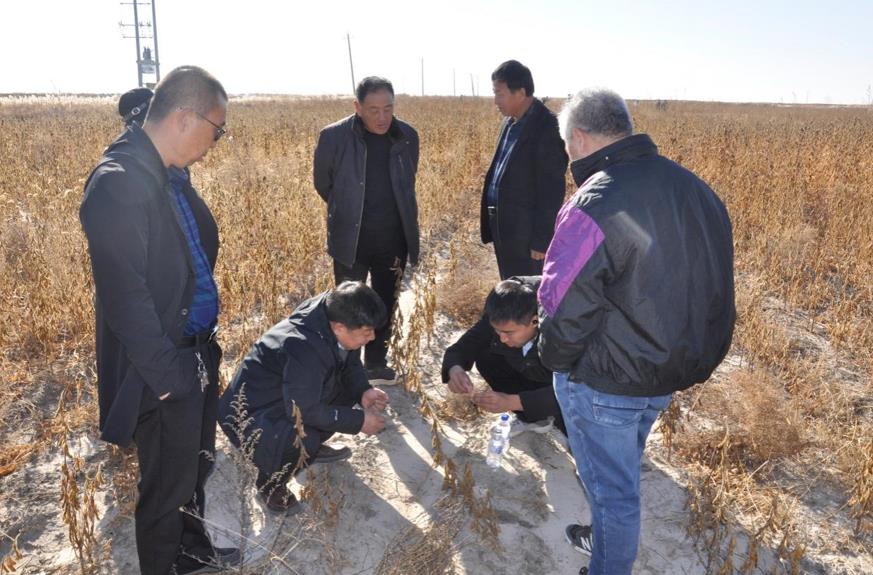 2021年10月23日,東北地理所組織測產專家對耐鹽堿大豆示范進行現場測產。專家組由吉林省農業科學院大豆研究所張偉研究員、吉林省農業科學院長春分院程延喜研究員、吉林大學王慶鈺教授、吉林省農業科學院吉林分院楊繼余研究員、吉林省農業科學院通化分院黃文研究員、吉林省新品種引育中心金曉飛研究員和東北地理所梁正偉研究員7位專家組成。