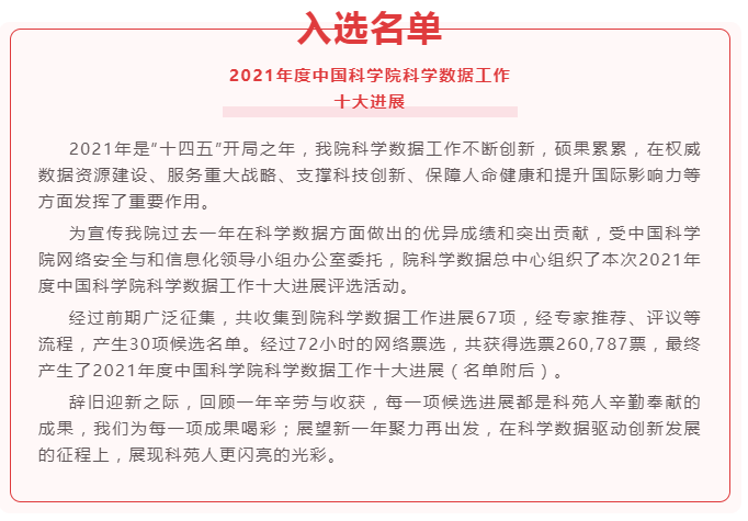 2021年度中國科學院科學數(shù)據(jù)工作十大進展具體如下: