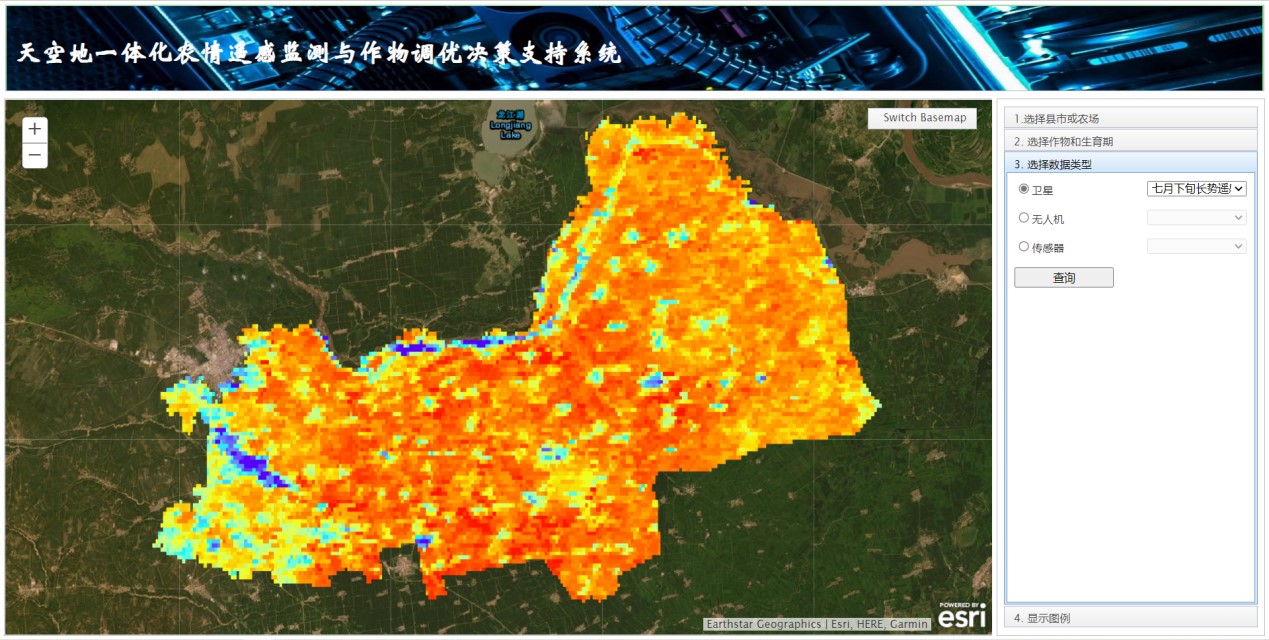 針對扎賚特旗現(xiàn)代農(nóng)業(yè)產(chǎn)業(yè)園的智慧農(nóng)業(yè)體系建設(shè),李曉峰團隊基于現(xiàn)有的智能設(shè)備和大數(shù)據(jù)資源,總結(jié)了一套適合當(dāng)?shù)氐臄?shù)據(jù)采集、處理、上傳和發(fā)布的一體化操作流程,制作和更新了平臺內(nèi)的遙感數(shù)據(jù),在系統(tǒng)上發(fā)布了可視化專題地圖,幫助產(chǎn)業(yè)園實現(xiàn)遠程數(shù)據(jù)產(chǎn)品制作和數(shù)據(jù)更新。