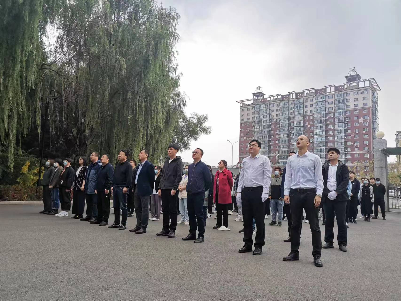 伴隨著莊嚴(yán)雄壯的國歌聲,鮮艷的五星紅旗冉冉升起,全體人員莊嚴(yán)肅立,齊唱國歌,行注目禮。