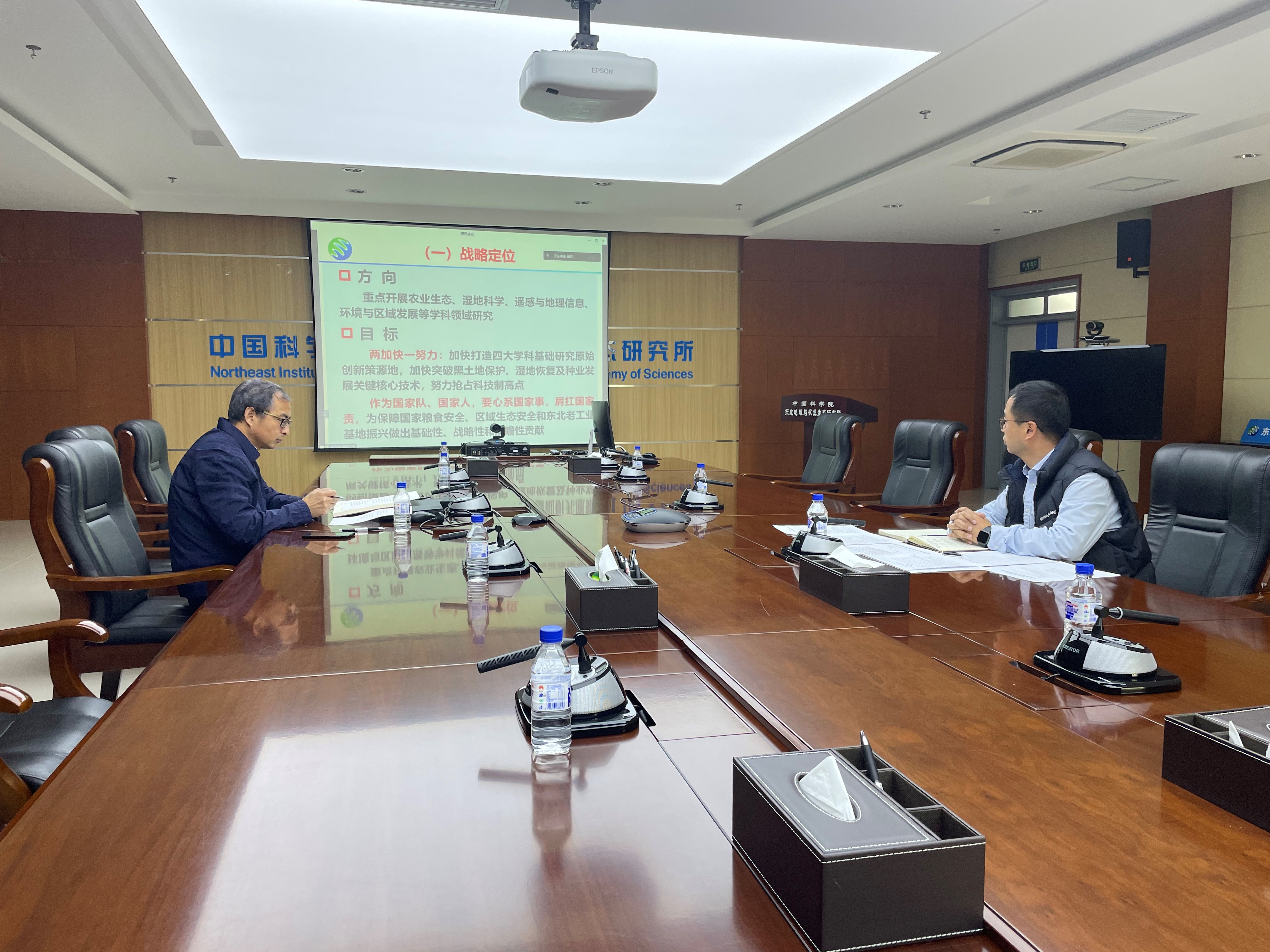 2022年10月21日,東北農業大學科技處寇勝利處長,資源與環境學院黨委書記劉剎、院長張穎、黨委副書記許輝、副院長李春燕、副院姜昭長和副處級輔導員李水童一行到東北地理所農業技術中心調研,就與東北地理所開展科技合作、共同推進黑土地保護與利用工作召開座談會議。