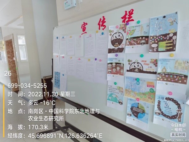 11月30日,土壤資源與利用學(xué)科組在哈爾濱所區(qū)宣傳欄張貼了世界土壤日官方宣傳海報,海報展示了2022年世界土壤日主題、土壤肥力形成與提升、土壤肥力與人體健康等內(nèi)容,使哈爾濱所區(qū)職工和研究生對2022年世界土壤日有了更深的認(rèn)識。此外,土壤資源與利用學(xué)科組在12月1日至3日期間,在疫情防控允許的條件下,在所住小區(qū)也進(jìn)行了世界土壤日宣傳海報的張貼,并為公共講解世界土壤日的由來以及土壤在糧食生產(chǎn)的中的重要作用,促進(jìn)了公眾關(guān)注和保護(hù)土壤意識的提升。