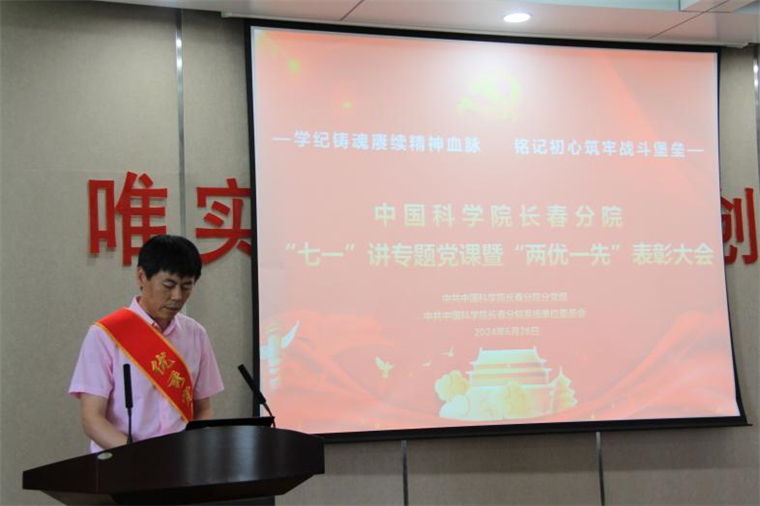 為深入學(xué)習(xí)貫徹習(xí)近平總書(shū)記關(guān)于黨紀(jì)學(xué)習(xí)教育的重要講話和重要指示精神,熱烈慶祝中國(guó)共產(chǎn)黨成立103周年,6月28日上午,中國(guó)科學(xué)院長(zhǎng)春分院隆重舉辦2024年度“七一”講專(zhuān)題黨課暨“兩優(yōu)一先”表彰大會(huì)。會(huì)上,中共中國(guó)科學(xué)院長(zhǎng)春分院分黨組、中共中國(guó)科學(xué)院長(zhǎng)春分院系統(tǒng)單位委員會(huì)對(duì)在長(zhǎng)春分院系統(tǒng)單位過(guò)去一年黨建工作中,表現(xiàn)突出的集體和個(gè)人給予表彰。